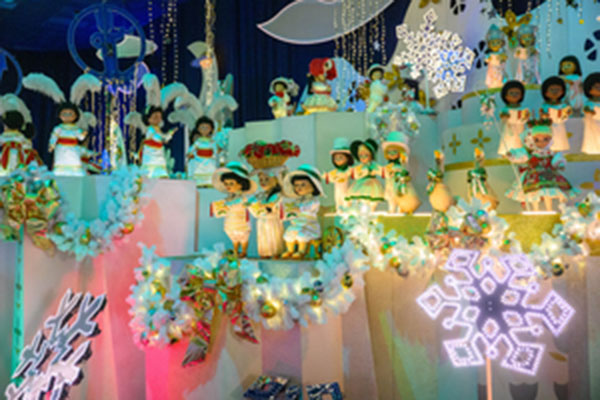 50,000 lights illuminate the façade of “it’s a small world” Holiday, with an additional 350,000 mini-lights brightening the trees, hedges and animal topiaries surrounding the attraction. Thousands of additional lights adorn the nearby shops and food kiosks.