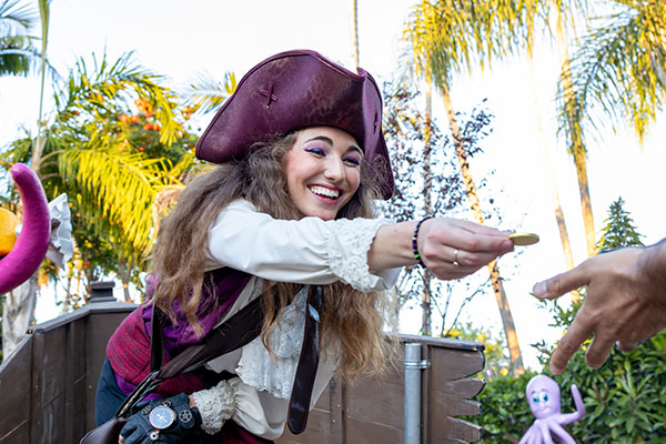 Santa makes stops at all three on-property hotels, matching his attire to fit each hotel’s theme. At Pixar Place Hotel, he embraces the artistry of Pixar animation with a colorful artist smock in front of his workshop. As the Disneyland Hotel transforms into a mid-century modern wonderland, Santa greets visitors in front of wintery trees wearing a stunning red suit with swirling fuchsia details. Reflective of the hotel’s rich, craftsman-style grandeur, Santa’s style at Disney’s Grand Californian Hotel & Spa features an elegant coat, embroidered vest, a custom-made bejeweled belt buckle and a stained-glass candle pin on his hat.