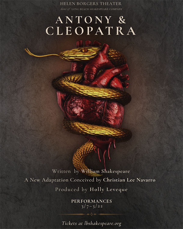 “Antony and Cleopatra” this bold reimagining of William Shakespeare’s tragedy strips away spectacle to reveal the raw human core beneath the legend. Rome and Egypt do not merely clash as superpowers — they fracture inside the hearts of two rulers trying to be everything at once: warrior and lover, sovereign and soul. The political machine surrounding them is equally formidable. Justin Valine embodies the calculating precision of Octavius Caesar. Julianne Holmquist portrays Octavia, whose quiet strength underscores the personal cost of political alliance. Connor Bowen appears as Domitius Enobarbus, Antony’s loyal confidant and moral compass, whose choices echo with devastating consequence. At its heart, Antony and Cleopatra is an exploration of love and duty — and how devotion to one demands the sacrifice of the other. The greatest soldier of the ancient world and its most powerful queen bind their empires — and their fates — together, chasing a fleeting sense of eternity found only in the quiet of midnight. Written by William Shakespeare, adapted by Christian Lee Navarro, and directed by Christian Lee Navarro, it runs March 7 through March 22 at the Helen Borgers Theatre in Long Beach. For tickets visit www.LBShakespeare.org.