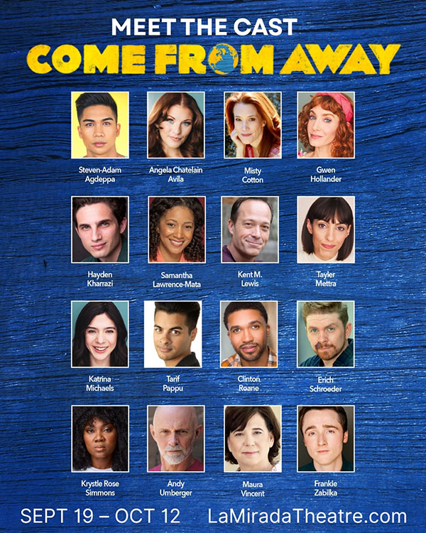 “Come from Away” is based on the true story of how, unexpectedly, the isolated community of Gander, Newfoundland, played host to the world. What started as an average day in a small town turned into an international sleepover, when 38 planes, carrying thousands of people from around the globe, were diverted to Gander’s airstrip on September 11, 2001. Undaunted by culture clashes and language barriers, the people of Gander cheered the stranded travelers with music, an open bar, and the recognition that we’re all part of a global family. Written by Irene Sankoff and David Hein, with music by Irene Sankoff and David Hein, and directed by Richard J. Hinds, it runs September 20 through October 12 at the La Mirada Theatre for the Performing Arts in La Mirada. For tickets call 562-944-9801 or visit www.LaMiradaTheatre.com.