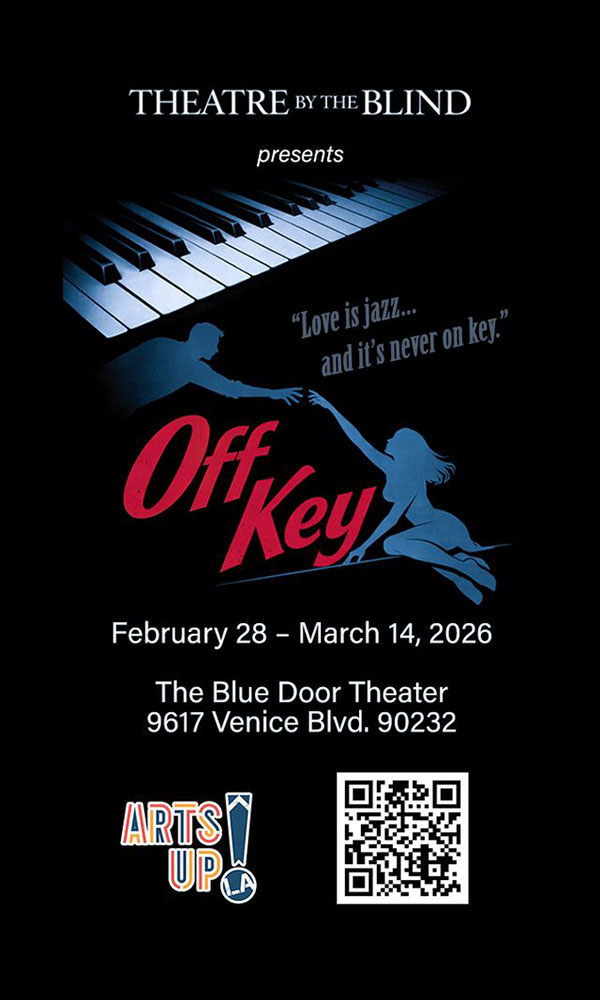 “Off Key” Set in a smoky, late-night jazz club, the play follows Candi (Maliaka S. Mitchell), a once-celebrated matchmaker whose business – and confidence – are falling apart. As Marvin (Marvin Dexter Moore) the jazz piano player underscores the action, she juggles a series of disastrously mismatched dates, each couple revealing more about her own fears of failure, loneliness, and control. When fantasy collides with reality, Candi’s trainee Doreen (Joslyn Marquez) is forced to confront a painful truth – she has been searching for love instead of living inside it. Through music and honesty, Doreen’s journey culminates in an unexpected revelation about her own life. Between improvised music and overheard confessions, the matchmaker begins to realize that her obsession with perfect pairings has kept her from listening to the messy human rhythms of real connection. By the final set, the club becomes a place not of romance solved, but of vulnerability shared – and a chance for Candi to start over. Written by Christopher Ureña, and directed by Greg Shane, it runs through March 14 at the Blue Door Theater in Culver City. For tickets visit www.artsupla.org.