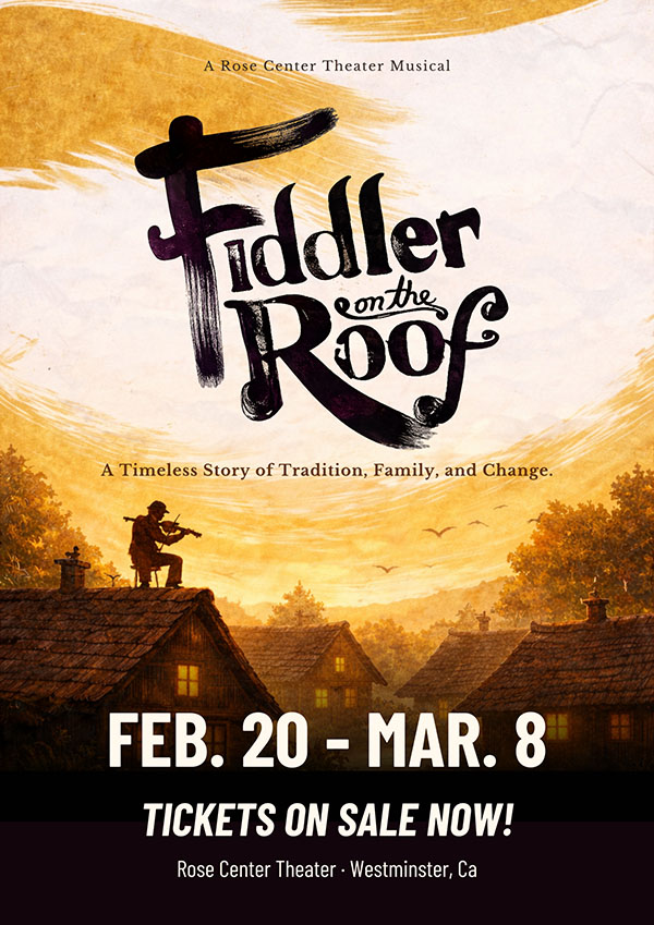 “Fiddler on the Roof” Set in the village of Anatevka at the turn of the 20th century, Fiddler on the Roof follows Tevye, a devoted husband and father striving to uphold tradition as his family and community face profound social change. Through humor, heart, and unforgettable music, the musical explores enduring themes of family, faith, love, and resilience. The score includes some of musical theater’s most celebrated songs, including “Tradition,” “If I Were a Rich Man,” “Matchmaker,” and “Sunrise, Sunset.” Written by Joseph Stein, with music by Jerry Bock, lyrics by Sheldon Harnick, and directed by Tim Nelson, it runs February 20 through March 8 at the Rose Center Theater in Westminster. For tickets visit rosecentertheater.com.