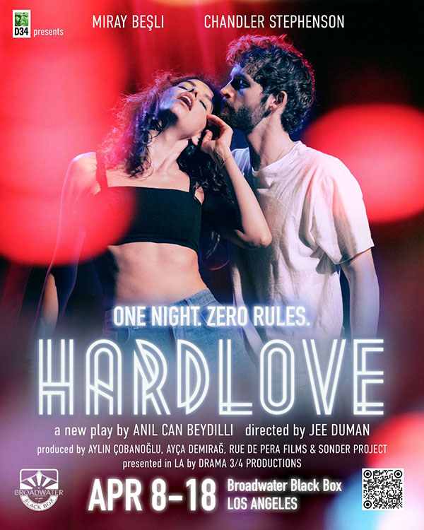 “HardLove” introduces ChiChi, a raw, free spirit with a wild, fierce heart and Theodore, the epitome of a well-mannered, intellectual gentleman who values order and structure. After stumbling into Teddy’s apartment blackout drunk, their initial fumbling attempts at a hookup quickly dissolve, exposing vastly different expectations of intimacy and connection. What follows is a raw and revealing exploration of vulnerability, power dynamics, and personal boundaries. Written by Anıl Can Beydilli, adapted by Esin İleri and Miray Beşli from the original Turkish play, translated by Esin İleri, and directed by Jee Duman, it runs April 8 through April 18 at the Broadwater Blackbox in Los Angeles. For tickets visit www.tickettailor.com/events/drama341/2102768.
