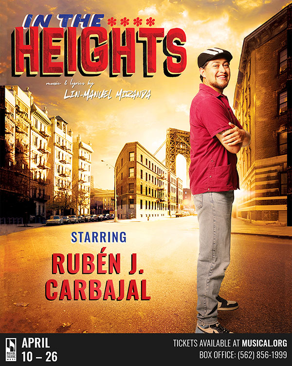 “In The Heights” is set in New York City’s Washington Heights and follows a vibrant neighborhood filled with ambition, heart, and deep cultural roots. Through a dynamic score infused with hip-hop, salsa, merengue, and soul, the musical pulses with the rhythm of the streets while telling a powerful story about identity, family, and the pursuit of opportunity. At the center of the story is Usnavi, a charismatic bodega owner torn between staying in the community he loves and pursuing his dream of returning to the Dominican Republic. Written by Quiara Alegría Hudes, with music by Lin-Manuel Miranda, and directed by Jesse J. Sanchez, it runs April 10 through April 26 at the Carpenter Performing Arts Center in Long Beach. For tickets call 562-856-1999 or visit musical.org/events/in-the-heights.