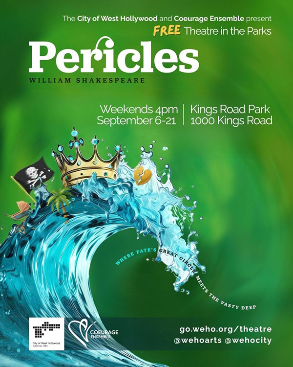 “Pericles” Part adventure, part fairytale, and full of heart, this immersive production of Shakespeare’s Pericles invites audiences to travel through mystical lands, meet pirates and nuns, and dance alongside a cast of unforgettable characters. When Pericles leaves home in search of fortune, they cross paths with a cast of strange and wondrous characters — wacky kings, mysterious nuns, evil queens, and the love of their life. But when tragedy strikes and that love is lost at sea, Pericles keeps moving to outrun grief. Will they find their way home or something even better? Running time is 90 minutes. Written by William Shakespeare, and directed by Amanda McRaven, it runs September 6 through September 21 at the Kings Road Park in West Hollywood. For tickets visit www.pericles-weho2025.eventbrite.com.
