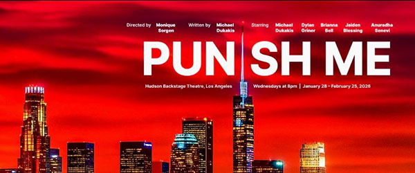 “Punish Me” A screenwriter struggling to make it in Hollywood becomes trapped in an increasingly abusive relationship with a narcissist who threatens both his career dreams and his legal status in America. The play explores the complexity of toxic relationships, narcissism, and obsession. It includes adult themes and simulated sex. Inspired by true events. Written by Michael Dukakis, and directed by Monique Sorgen, it runs January 28 through February 25 at the Hudson Backstage Theatre in Los Angeles. For tickets visit www.onstage411.com/punishme.