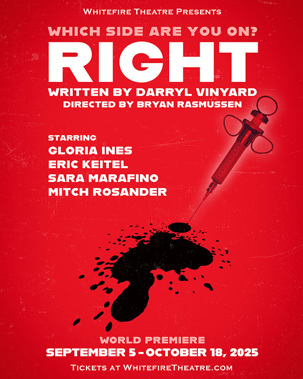 “Right” From 2024 to 2025 the number of measles cases in the US has grown almost 450%; there have been 3 deaths so far this year. Over a quarter of a million kindergarteners are not vaccinated against measles. Fewer than 40% of Americans say they trust doctors. RIGHT examines what happens when an expectant couple risks fracturing their family when they refuse to let their unvaccinated nephew near their baby, igniting a relentless battle over science, safety, and loyalty. Written by Darryl Vinyard, and directed by Bryan Rasmussen, it runs September 6 through October 18 at the Whitefire Theatre in Sherman Oaks. For tickets call 818-687-8559 or visit www.whitefiretheatre.com.