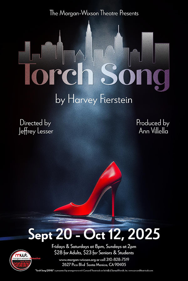 “Torch Song” the life of Arnold Beckoff, a torch song-singing, Jewish drag queen living in New York City, is dramatized over the span of the late 1970s and 1980s. Torch Song follows Arnold’s odyssey to find happiness and lasting love. His desires take him on a universal journey to find a loving relationship to share his life, a child, and even a pair of bunny slippers that fit. A visit from his overbearing mother challenges his life and makes him realize that more than anything he requires respect. With fierce honesty and touching vulnerability, Torch Song is a celebration of chosen family and the enduring power of self-expression. Written by Harvey Fierstein, and directed by Jeffrey Lesser, it runs September 26 through October 12 at the Morgan-Wixson Theatre in Santa Monica. For tickets call 310-828-7519 or visit www.morgan-wixson.org.