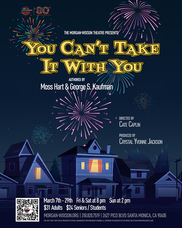 “You Can’t Take It with You” is a classic American comedy that celebrates individuality, love, and the joy of living life on your own terms. Set in 1930s New York, the play follows the eccentric Sycamore family, whose quirky hobbies and free-spirited lifestyle stand in sharp contrast to societal norms. Chaos and hilarity ensue when their daughter Alice brings her straight-laced fiancé and his conservative parents home for dinner. The play is a timeless reminder that happiness isn’t found in wealth or status. With sharp wit and heartwarming moments, it highlights the beauty of embracing one’s passions and differences. As the two families clash and connect, the story unfolds with charm, laughter, and unexpected wisdom. You Can’t Take It with You remains a beloved theatrical gem that inspires audiences to live fully and authentically. Written by George S. Kaufman and Moss Hart, and directed by Cate Caplin, it runs March 7 through March 29 at the Morgan-Wixson Theatre in Santa Monica. For tickets call 310-828-7519 or visit www.morgan-wixson.org.
